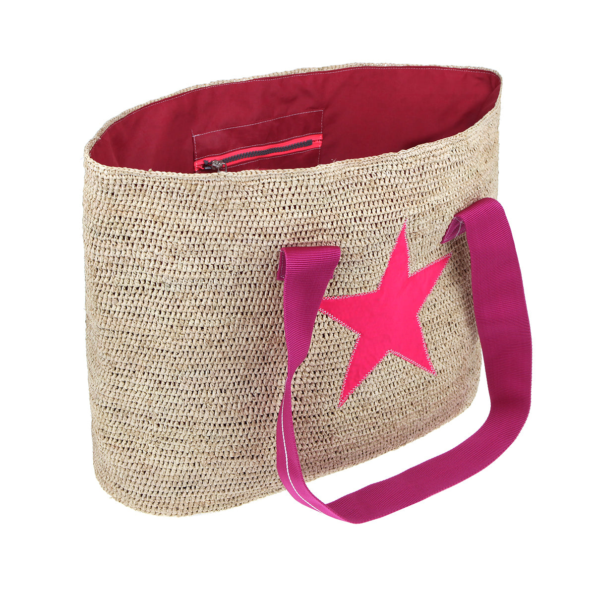 Einzigartige Strandtasche aus Bast mit Tragegurten und Segelfutter , 1 Hauptfach, 1 Innentasche mit Reißverschluss, Schultergurt, wasserabweisend, Leergewicht: 500g, Maße ca. H 35 x B 50 x T 19 cm