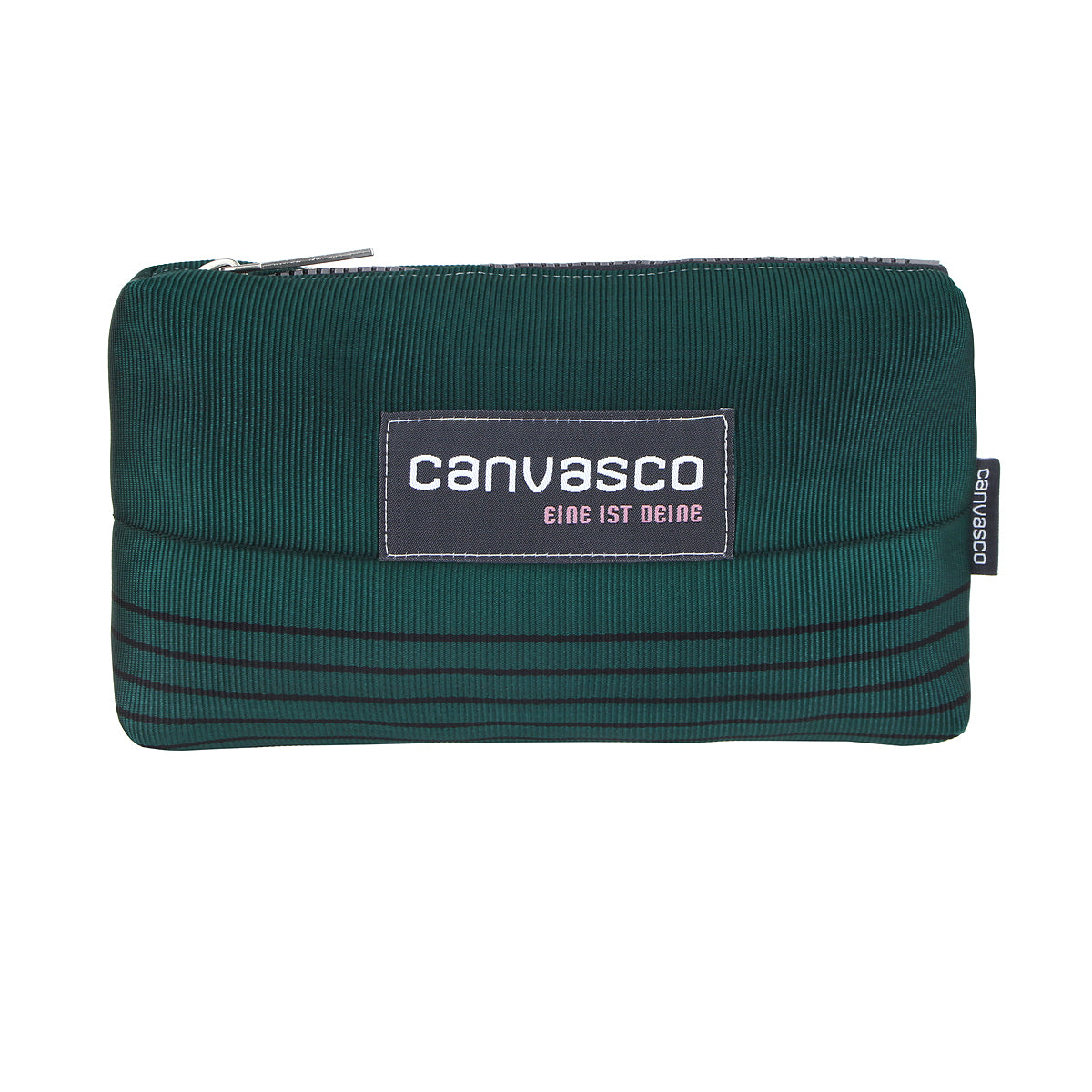 Make-up Tasche aus Canvasco-Gurt. Ein Hauptfach mit Reißverschluss.