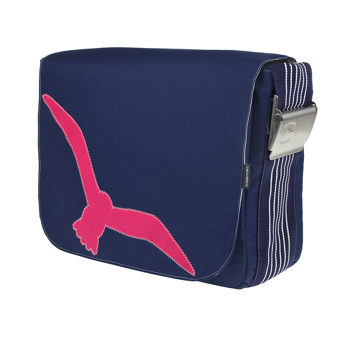 UNIKAT Segeltuchtasche mit Klettverschluss, 1 Hauptfach, 2 kleine und 1 grosse Innentasche mit Reissverschlüssen, 1 Handyfach, 9 cm breiter und längenverstellbarer Tragegurt, mit Edelstahlschnalle, wasserabweisend und waschbar, Leergewicht: 800g, Abmessungen ca. H 30 x B 40 x T 12 cm