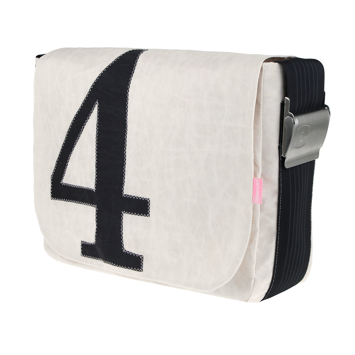 UNIKAT Segeltuchtasche mit Klettverschluss, 1 Hauptfach, 2 kleine und 1 grosse Innentasche mit Reissverschlüssen, 1 Handyfach, 9 cm breiter und längenverstellbarer Tragegurt, mit Edelstahlschnalle, wasserabweisend und waschbar Leergewicht: 800g, Abmessungen ca. H 30 x B 40 x T 12 cm