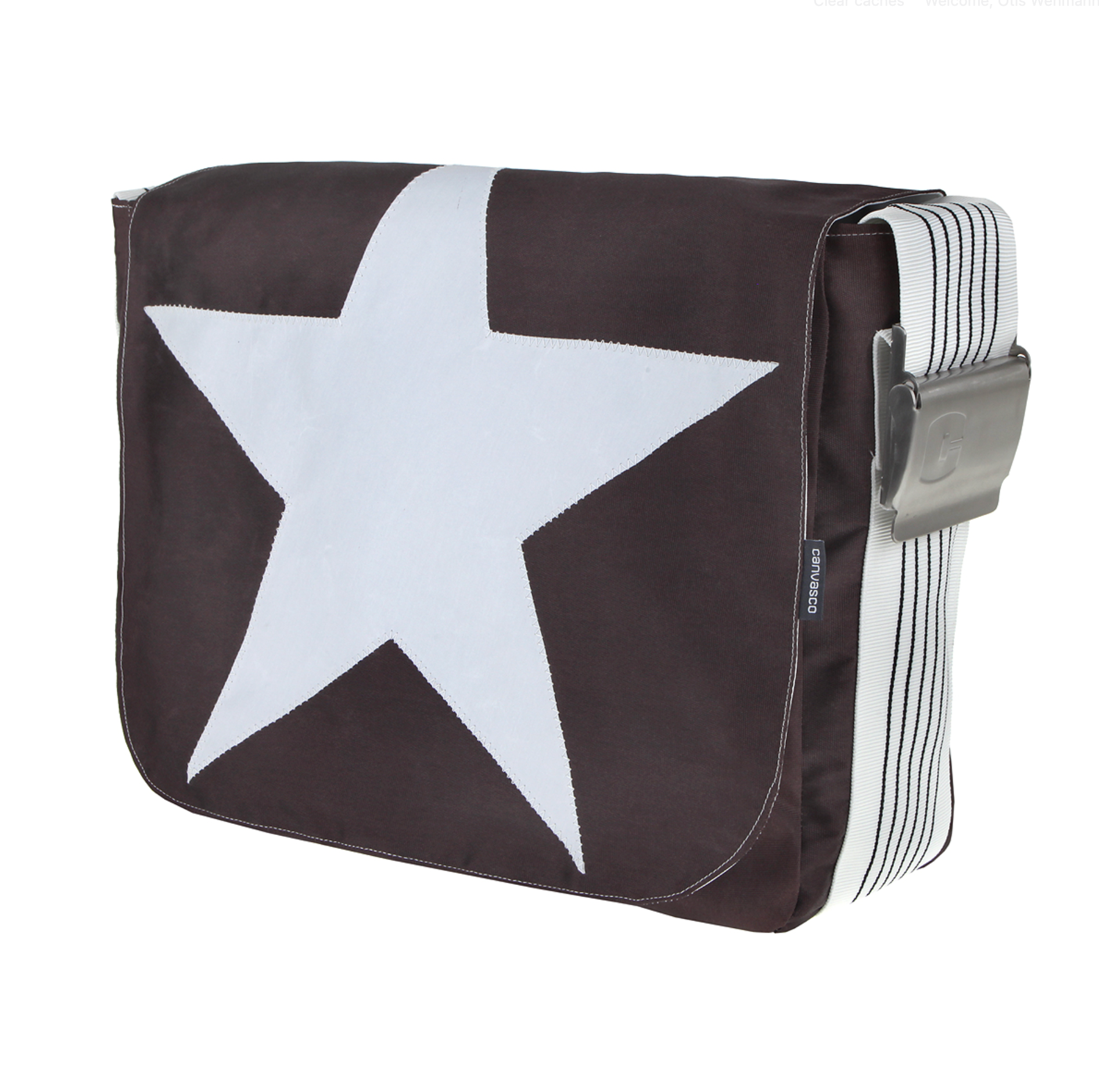 UNIKAT Segeltuchtasche mit Klettverschluss, 1 Hauptfach, 2 kleine und 1 grosse Innentasche mit Reissverschlüssen, 1 Handyfach, 9 cm breiter und längenverstellbarer Tragegurt, mit Edelstahlschnalle, wasserabweisend und waschbar, Leergewicht: 800g, Abmessungen ca. H 30 x B 40 x T 12 cm