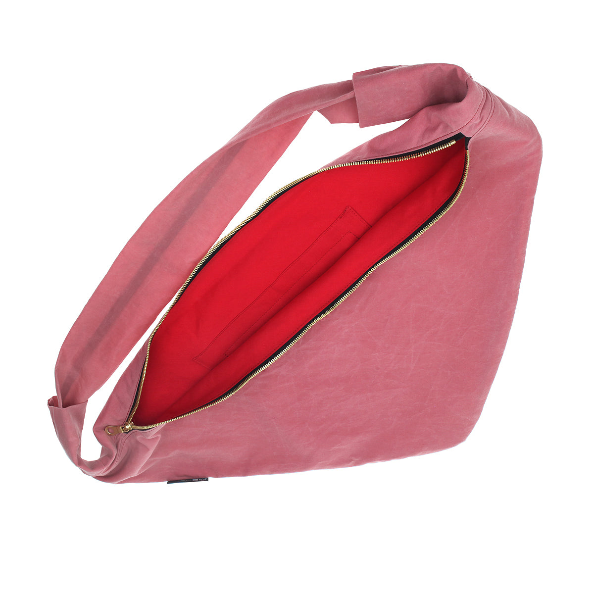 Eine dreieckige Tasche, die sich harmonisch dem Körper anpasst. Einzigartiger wasserabweisender Staywax/ Oilskin mit speziellem Reißverschluss, 1 Hauptfach, 1 seitliches Innenfach.