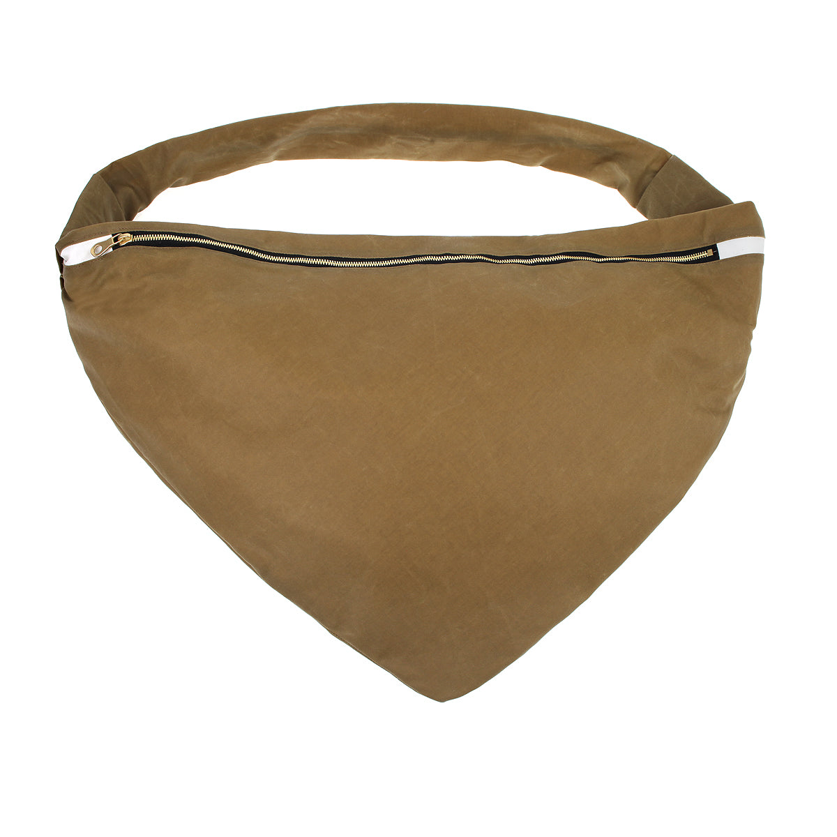Eine dreieckige Tasche, die sich harmonisch dem Körper anpasst. Einzigartiger wasserabweisender Staywax/ Oilskin mit speziellem Reißverschluss, 1 Hauptfach, 1 seitliches Innenfach.
