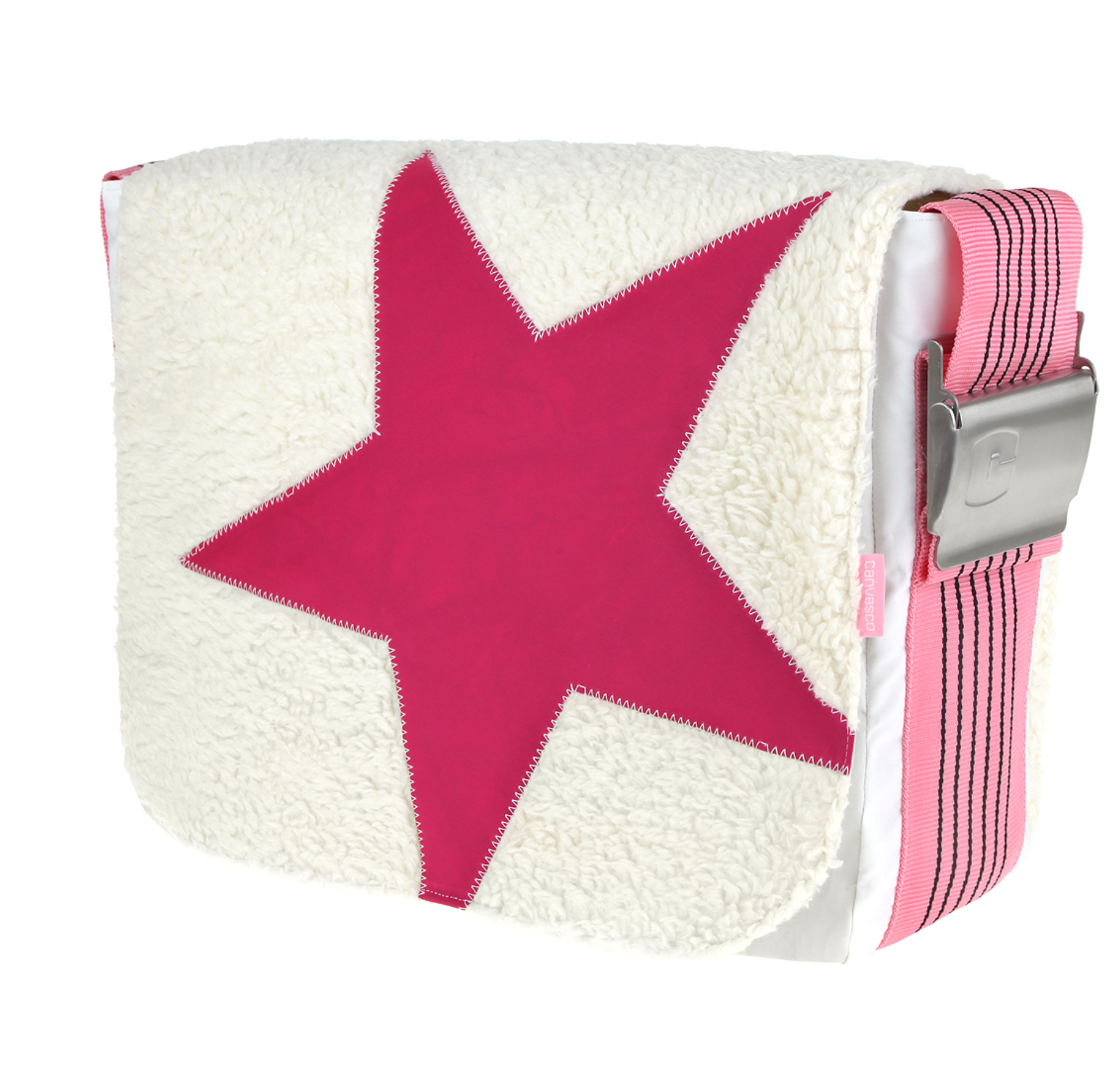 UNIKAT Segeltuchtasche mit Klettverschluss, 1 Hauptfach, 2 kleine und 1 grosse Innentasche mit Reissverschlüssen, 1 Handyfach, 9 cm breiter und längenverstellbarer Tragegurt, mit Edelstahlschnalle, wasserabweisend und waschbar, Leergewicht: 700 g, Abmessungen ca. H 22 x B 32 x T 12 cm