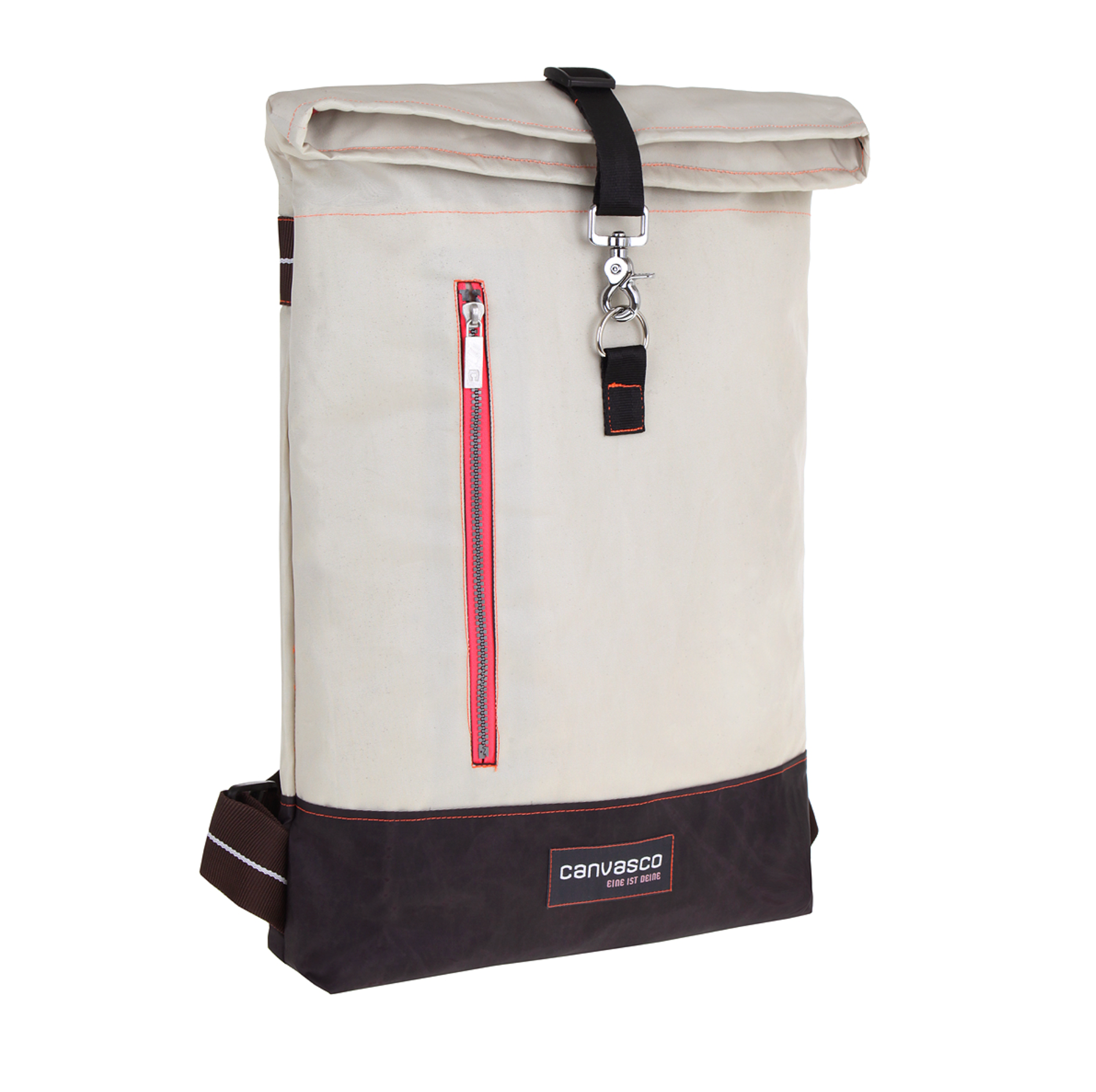 UNIKAT Segel Rucksack mit Kurierfahrradverschluss, 1 Hauptfach, 1 Laptopinnenfach, 1 Seitentasche vorne, Taschenboden farblich abgesetzt, 5 cm breite, längenverstellbare Schultergurte, wasserabweisend, Leergewicht 700 g, Abmessungen ca. H 62 x B 38 x T 10 cm
