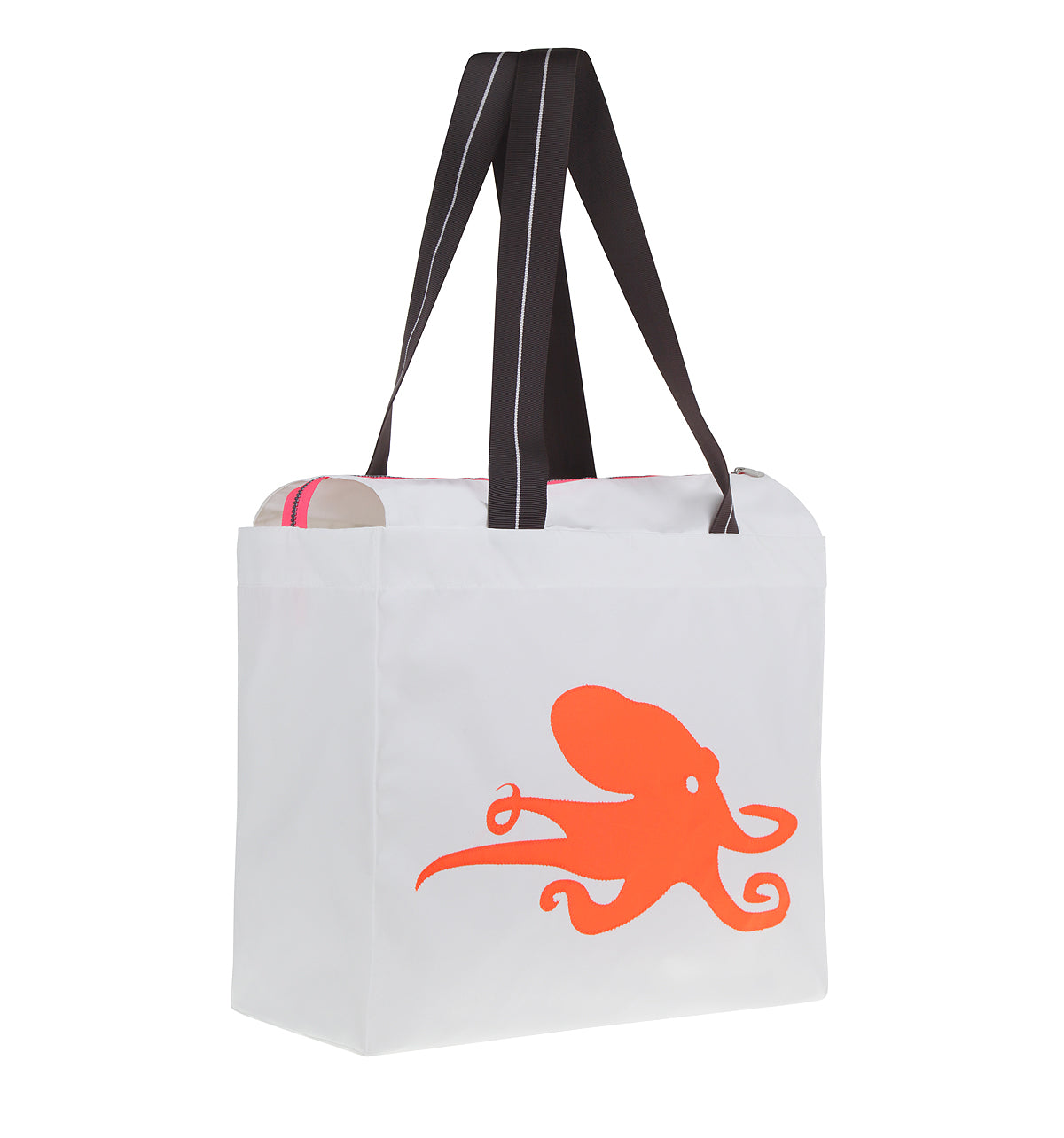 This Canvasco bag is made from recycled sail – each piece a true one-of-a-kind with its own story from the wind and the sea. The material is water-repellent, washable, and known for its durable feel and distinctive sail texture.