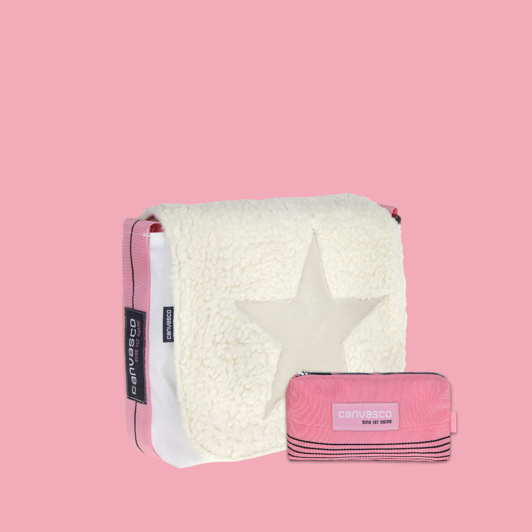 Make-up Tasche aus Canvasco-Gurt. Ein Hauptfach mit Reißverschluss.
