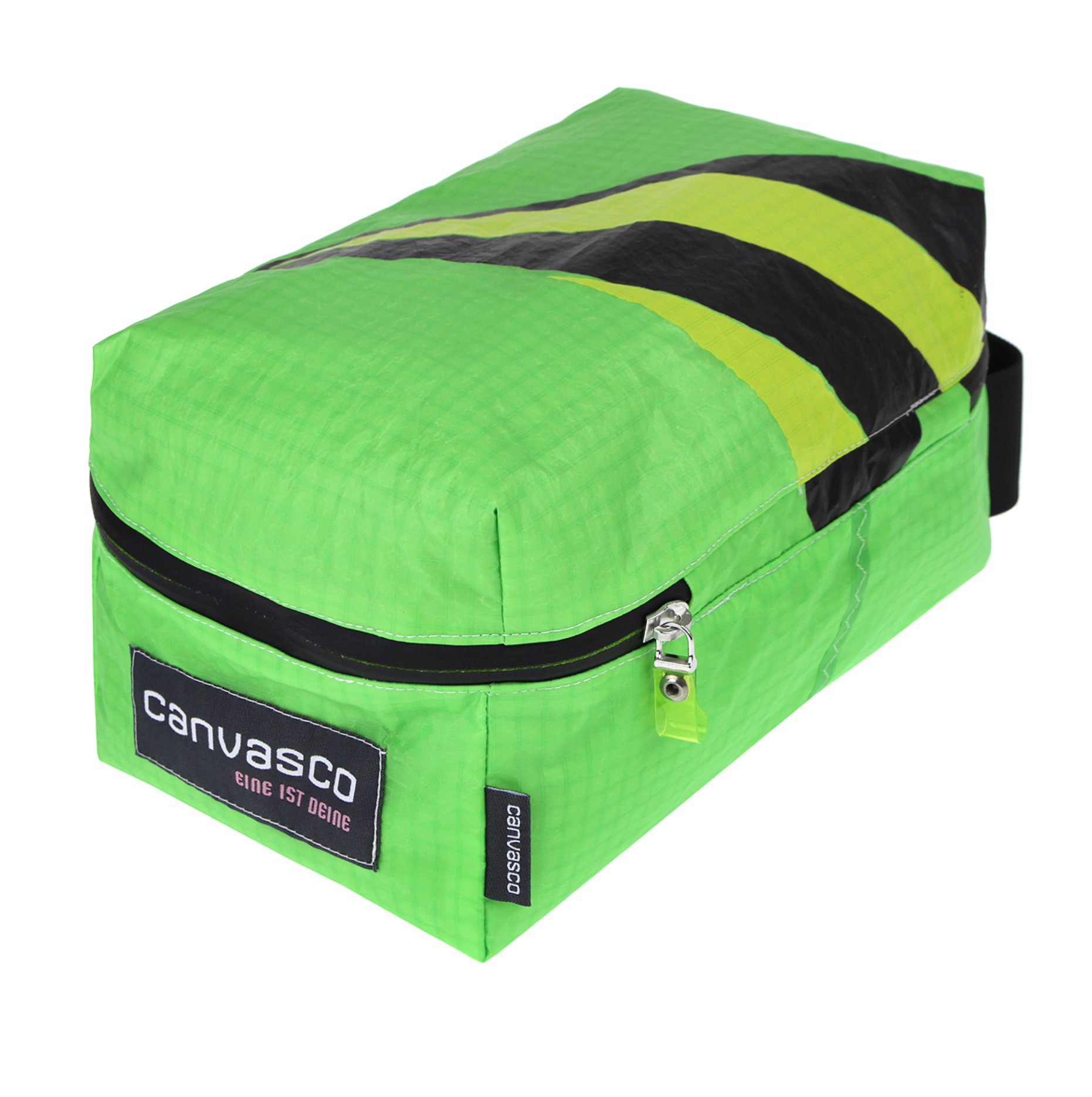 UNIKAT sail toiletry bag with waterproof special zipper, 1 main compartment, 3 side compartments inside, 1 handle on the side end, water-repellent and washable, empty weight approx. 150 g, dimensions approx. H 11 x W 24 x D 13 cm