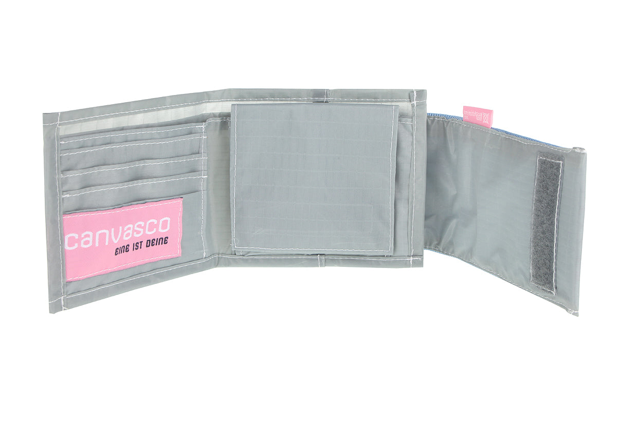 Unique sailing wallet with Velcro fasteners, 2 card slots, 1 ID card slot, 2 note slots and 1 coin pocket, water-repellent and washable Empty weight approx. 50 g, dimensions approx. H 10 x W 12