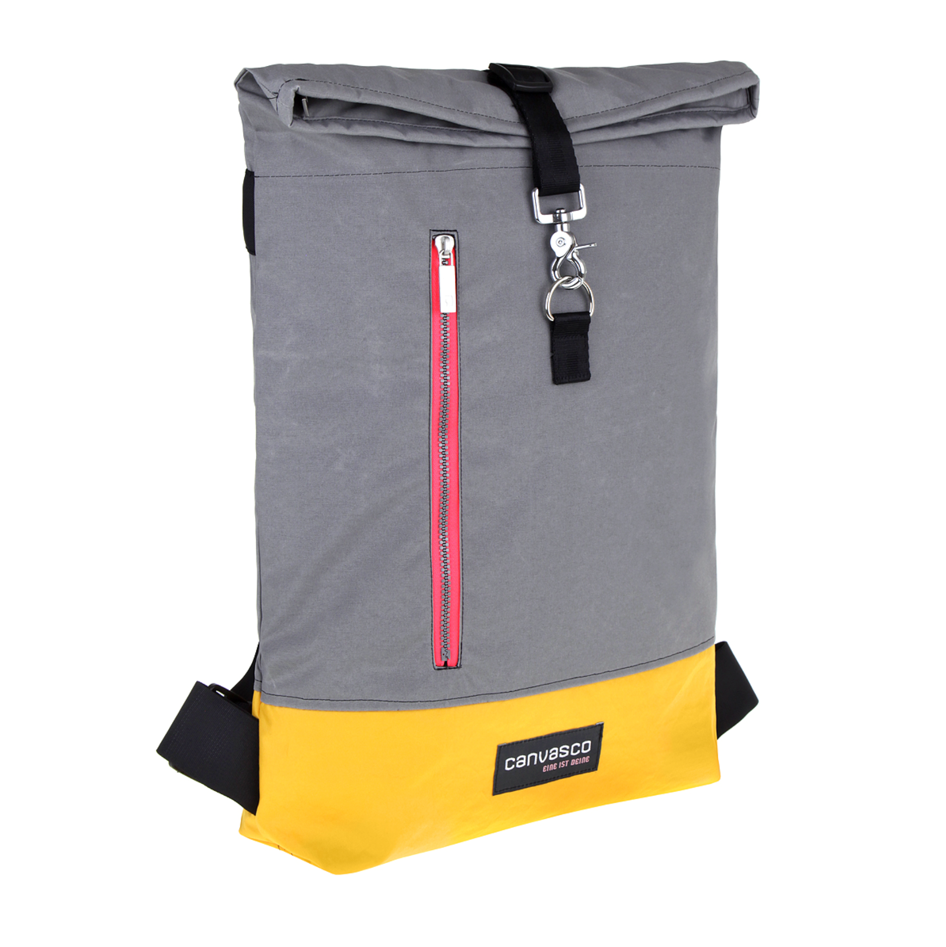 Unique sailing backpack with courier bike closure, 1 main compartment, 1 laptop compartment, 1 side pocket on the front, bottom in a contrasting color, 5 cm wide, length-adjustable shoulder straps, water-repellent, empty weight 700 g, dimensions approx. H 62 x W 38 x D 10 cm